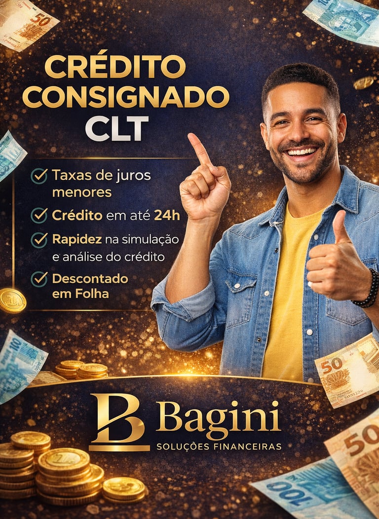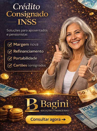 A Bagini Soluções Financeiras é correspondente bancário especializada em crédito consignado para trabalhadores CLT e beneficiários do INSS.